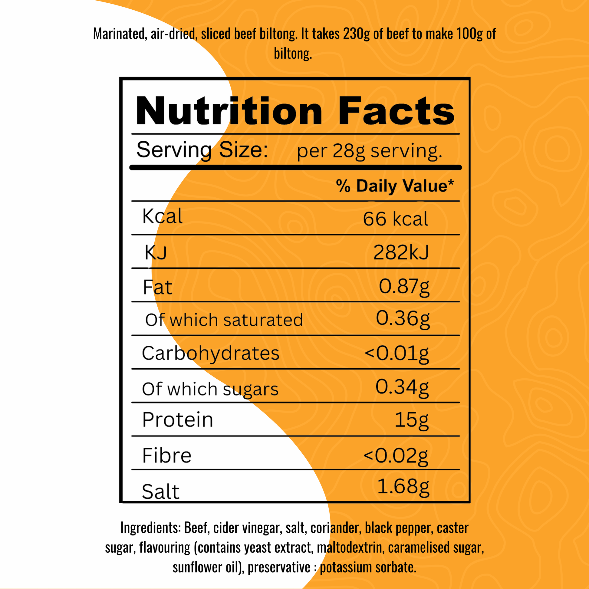High protein, low fat, low cal and naturally gluten-free — proper biltong, no nonsense.